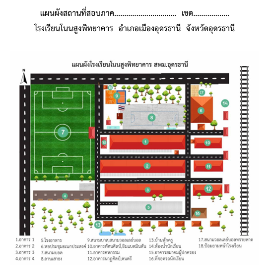 แผนผังโรงเรียนโนนสูงพิทยาคาร สำหรับการเป็นสนามสอบแข่งขันเพื่อบรรจุบุคคลเป็นข้าราชการหรือพนักงานท้องถิ่น พ.ศ 2568 ในวันอาทิตย์ที่ 7 ธันวาคม 2568